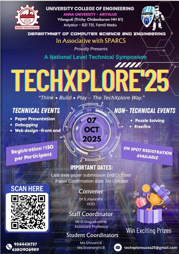 University College of Engineering, Anna University – Ariyalur was established as per the Govt Order: Ms. No 396 Higher Education (J-2) Department dated 26.09.2008 with the aim to provide quality Engineering education to the students from the backward districts and various parts of Tamil Nadu.